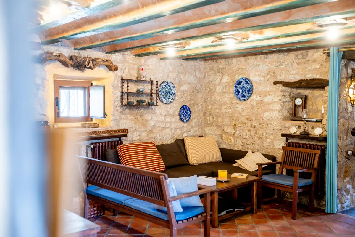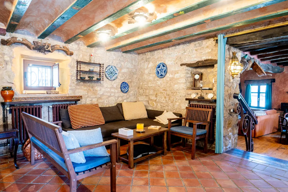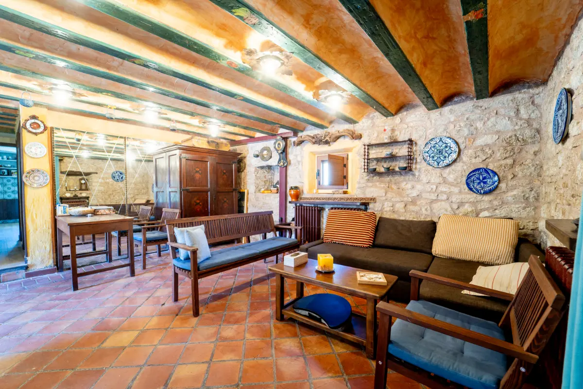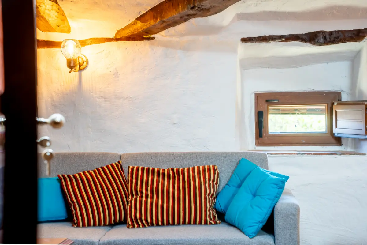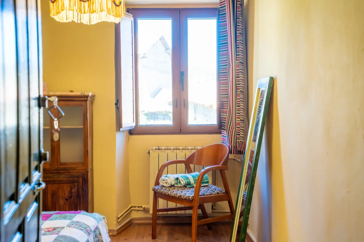 La sala principal está orientada alrededor de una preciosa chimenea, donde tal vez puedas calentarte del frío o tostar pan en verano. También encontrarás libros, juegos y una guitarra por si quisieras alegrarnos la noche. La casa tiene un precioso patio donde por supuesto puedes poner los pies a remojo mirando las estrellas.