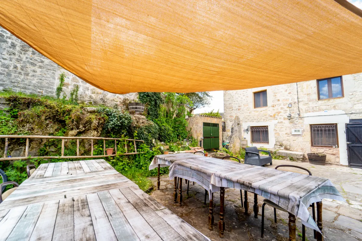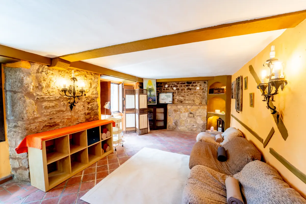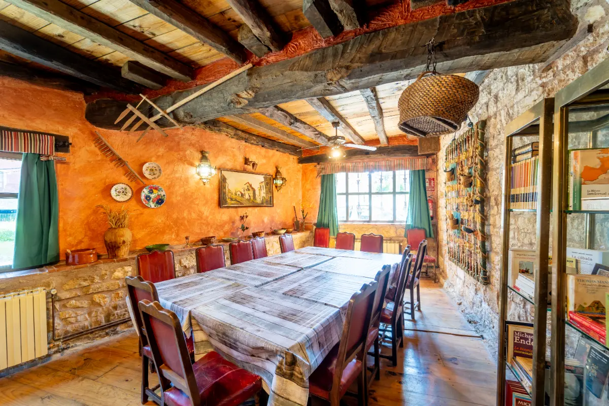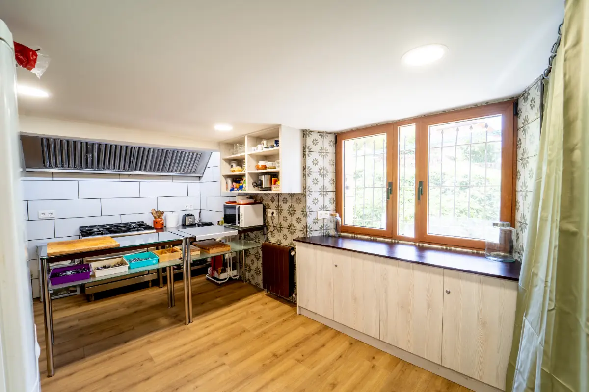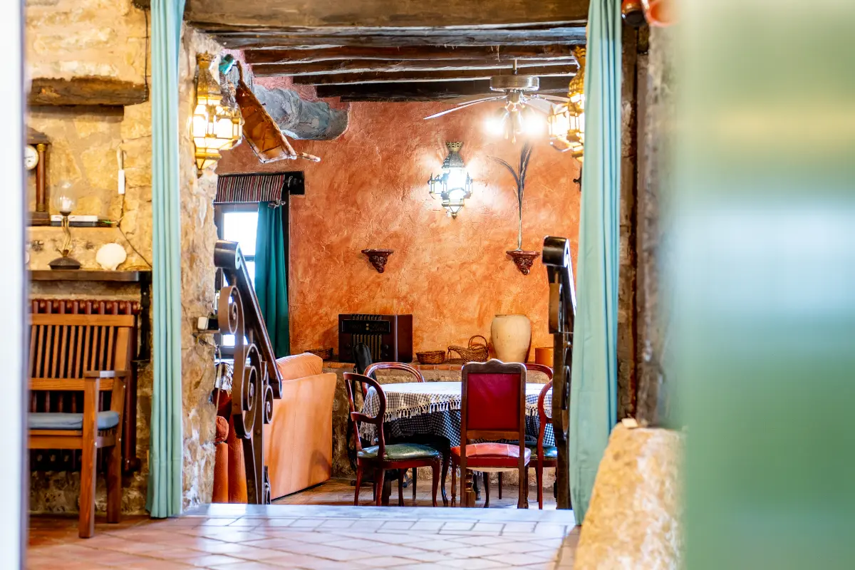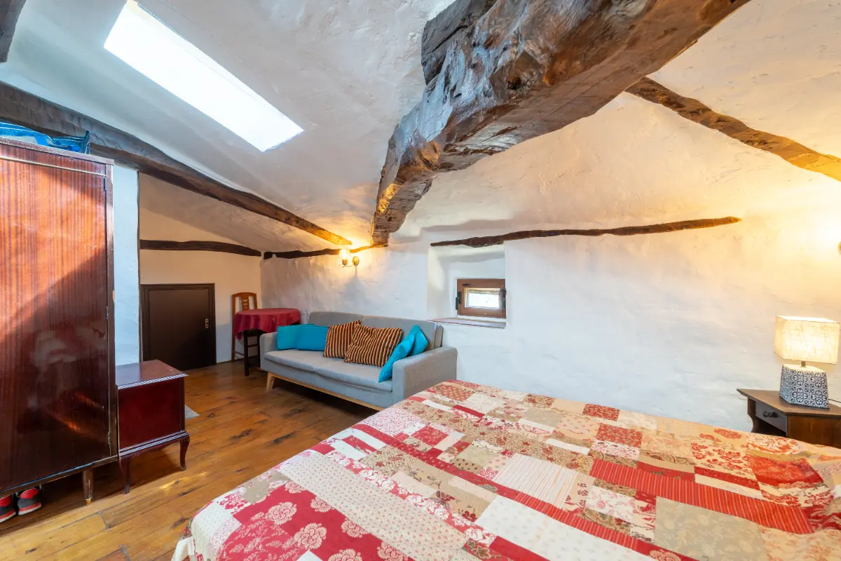 La sala principal está orientada alrededor de una preciosa chimenea, donde tal vez puedas calentarte del frío o tostar pan en verano. También encontrarás libros, juegos y una guitarra por si quisieras alegrarnos la noche. La casa tiene un precioso patio donde por supuesto puedes poner los pies a remojo mirando las estrellas.